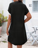 SPECIFICATIONS Style: Casual Material: Cotton Blends Dress Type: A-Line Dress Length: Knee Length Neckline: V neck_V Pattern Type: Print Sleeve Type: Regular sleeve Sleeve Length: Half Sleeve Details: Buckle,Ruffle Fit Type: Regular Season: Spring,Summer,Fall Occasion: Daily Package Includes: 1 x Dress SIZE TABLE Size Bust Length C...