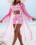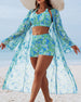 SPECIFICATIONS Style: Vacation Material: 15% Spandex,85% Polyester Occasion: Vacation Pattern Type: Print Sleeve Length: Sleeveless Top Type: Bikini,Cover up Bottom Type: Shorts Fit Type: Regular Season: Spring,Summer,Fall,Winter Package Includes: 1 x Bikini,1 x Cover up SIZE TABLE Size Bust Waist Hip CM INCH CM INCH CM INCH S 86 3...