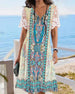 SPECIFICATIONS Style: Casual Material: Cotton Blends Dress Type: A-Line Dress Length: Midi Neckline: V neck_V Pattern Type: Floral Sleeve Type: Regular sleeve Sleeve Length: Half Sleeve Details: Patchwork Fit Type: Regular Season: Spring, Summer, Fall Occasion: Daily Package Includes: 1 x Dress SIZE TABLE Size Bust Length CM ...