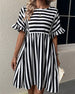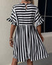 SPECIFICATIONS Style: Casual Material: Cotton Blends Dress Type: A-Line Dress Length: Knee Length Neckline: Round Neck Pattern Type: Striped Sleeve Type: Ruffle Sleeve Sleeve Length: Short Sleeve Fit Type: Regular Season: Spring, Summer Occasion: Daily Package Includes: 1 x Dress SIZE TABLE Size Bust Length CM INCH CM INCH S 95 37.40 ...