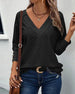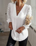 SPECIFICATIONS Top Type: Blouses Style: Elegant Material: Cotton Blends Occasion: Daily,Vacation,Work Neckline: V neck_V Pattern Type: Solid Color Sleeve Type: Puff Sleeve Sleeve Length: Long Sleeve Fit Type: Regular Season: Spring,Summer,Fall Details: Patchwork,Lace Package Includes: 1 x Blouse SIZE TABLE Size Bust Length CM INCH ...