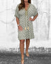 SPECIFICATIONS Style: Casual Material: Cotton Blends Dress Type: A-Line Dress Length: Above-knee Neckline: Round Neck Pattern Type: Geometric Print Sleeve Type: Regular sleeve Sleeve Length: 3/4 Sleeve Fit Type: Regular Season: Spring,Fall,Winter Occasion: Daily Package Includes: 1 x Dress SIZE TABLE Size Bust Length CM INCH CM INCH S...