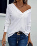 SPECIFICATIONS Top Type: Blouses Style: Casual Material: Cotton Blends Occasion: Daily Neckline: V neck_V Pattern Type: Solid Color Sleeve Type: Dropped shoulder Sleeve Length: Long Sleeve Fit Type: Regular Season: Spring,Fall,Winter Package Includes: 1 x Blouse SIZE TABLE Size Bust Length CM INCH CM INCH S 100 39.37 64 25.20 ...