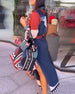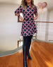 Dot Patchwork Lantern Sleeve V-Neck Tops
