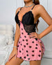 SPECIFICATIONS Style: Sexy Material: Cotton Blends Dress Type: Cami Dress Length: Knee Length Neckline: Spaghetti Straps Pattern Type: Color Block,Heart Sleeve Type: Regular sleeve Sleeve Length: Sleeveless Details: Patchwork,Lace Fit Type: Skinny Season: Spring,Summer Occasion: Daily Package Includes: 1 x Lingerie SIZE TABLE Size Bust Wa...