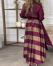 SPECIFICATIONS Style: Elegant Material: 100% Polyester Dress Type: A-Line Dress Length: Maxi Neckline: Lapel Pattern Type: Striped Sleeve Type: Regular sleeve Sleeve Length: Long Sleeve Details: Bandage,Buttons Fit Type: Regular Season: Spring,Fall Occasion: Daily Package Includes: 1 x Dress SIZE TABLE Size Bust Length Sleeves Sho...
