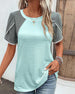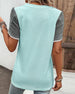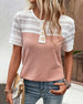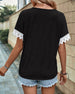 SPECIFICATIONS Top Type: T-shirt Style: Casual Material: Cotton Blends Occasion: Daily Neckline: Round Neck Pattern Type: Color Block Sleeve Type: Raglan sleeve Sleeve Length: Short Sleeve Fit Type: Regular Season: Spring, Summer, Fall Details: Patchwork, Lace Package Includes: 1 x T-shirt SIZE TABLE Size Bust Length CM INCH ...