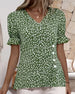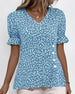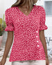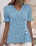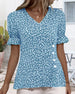 SPECIFICATIONS Top Type: Blouses Style: Elegant Material: Cotton Blends Occasion: Daily Neckline: V neck_V Pattern Type: Floral, Print Sleeve Type: Ruffle Sleeve Sleeve Length: Short Sleeve Fit Type: Regular Season: Summer Details: Buttons, Ruffle Package Includes: 1 x Blouse SIZE TABLE Size Bust Length CM INCH CM INCH S 9...