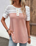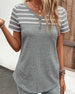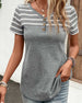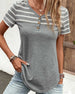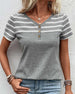 SPECIFICATIONS Top Type: T-shirt Style: Casual Material: Cotton Blends Occasion: Daily Neckline: V neck_V Pattern Type: Striped Sleeve Type: Regular sleeve Sleeve Length: Short Sleeve Fit Type: Regular Season: Spring, Summer, Fall Details: Buttons Package Includes: 1 x Blouse SIZE TABLE Size Bust Length CM INCH CM INCH S ...