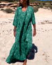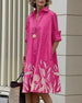 SPECIFICATIONS Style: Casual Material: Cotton Blends Dress Type: A-Line Dress Length: Knee Length Neckline: V neck_V Pattern Type: Print Sleeve Type: Flare Sleeve Sleeve Length: Nine Points Sleeve Details: Buttons Fit Type: Loose Season: Spring, Summer, Fall Occasion: Daily Package Includes: 1 x Dress SIZE TABLE Size Bust Len...