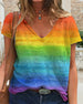 SPECIFICATIONS Top Type: T-shirt Style: Casual Material: Cotton Blends Occasion: Daily Neckline: V neck_V Pattern Type: Rainbow Striped, Print Sleeve Type: Regular sleeve Sleeve Length: Short Sleeve Fit Type: Regular Season: Spring, Summer, Fall Package Includes: 1 x T-shirt SIZE TABLE Size Bust Length Shoulder CM INCH CM I...