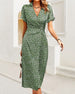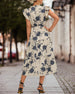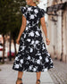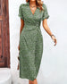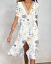 SPECIFICATIONS Style: Casual Material: Cotton Blends Dress Type: A-Line Dress Length: Midi Neckline: V neck_V Pattern Type: Floral, Print Sleeve Type: Ruffle Sleeve Sleeve Length: Short Sleeve Details: Ruffle Fit Type: Regular Season: Spring, Summer, Fall Occasion: Daily Package Includes: 1 x Dress SIZE TABLE Size Bust Leng...