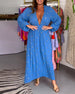 SPECIFICATIONS Style: Casual Material: Cotton Blends Dress Type: A-Line Dress Length: Maxi Neckline: V neck_V Pattern Type: Geometric Print, Print Sleeve Type: Regular sleeve Sleeve Length: Nine Points Sleeve Fit Type: Loose Season: Spring, Summer, Fall Occasion: Daily Package Includes: 1 x Dress SIZE TABLE Size Bust Length C...