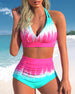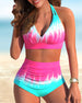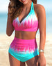 SPECIFICATIONS Style: Vacation, Sexy Material: Chinlon, Spandex Occasion: Vacation Neckline: Halter Pattern Type: Color Block, Print Sleeve Length: Sleeveless Top Type: Bikini Bra Type: Wireless Bra Bottom Type: High Cut Fit Type: Skinny Season: Summer Details: Backless, Cut Out Package Includes: 1 x Bikini SIZE TABLE Size ...