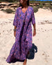 SPECIFICATIONS Style: Casual, Vacation Material: Cotton Blends Dress Type: Shift dress Dress Length: Maxi Neckline: V neck_V Pattern Type: Print Sleeve Type: Regular sleeve Sleeve Length: 3/4 Sleeve Fit Type: Loose Season: Spring, Summer, Fall Occasion: Daily, Vacation Package Includes: 1 x Dress SIZE TABLE Size Bust Length c...