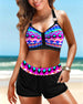 SPECIFICATIONS Style: Vacation Material: Spandex, Polyester Occasion: Vacation Neckline: Halter Pattern Type: Print Sleeve Length: Sleeveless Top Type: Bikini Bra Type: Wireless Bra Bottom Type: Shorts Fit Type: Regular Package Includes: 1 x Bikini SIZE TABLE Size Bust Under Bust Waist Hips cm inch cm inch cm inch cm inch...