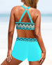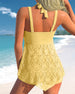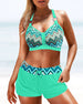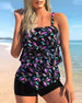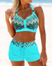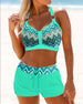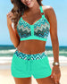 SPECIFICATIONS Style: Vacation Material: Chinlon Occasion: Vacation Neckline: Spaghetti Straps Pattern Type: Print Sleeve Length: Short Sleeve Top Type: Tankini Bra Type: Wireless Bra Bottom Type: Shorts Fit Type: Skinny Season: Summer Details: Shirred Package Includes: 1 x Tankini SIZE TABLE (cm) Size Bust Length Waist Hip...
