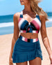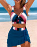 SPECIFICATIONS Style: Vacation, Sexy Material: 85% Polyester, 15% Spandex Occasion: Vacation Pattern Type: Color Block Sleeve Length: Sleeveless Top Type: Bikini Bra Type: Wireless Bra Bottom Type: Skirts Fit Type: Regular Season: Summer Details: Cross Straps Package Includes: 1 x Bikini SIZE TABLE Size Bust Waist Hip Under bust CM INCH...