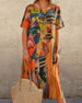 SPECIFICATIONS Style: Casual Material: Cotton Blends Dress Type: A-Line Dress Length: Midi Neckline: V neck_V Pattern Type: Print Sleeve Type: Regular sleeve Sleeve Length: 3/4 Sleeve Fit Type: Regular Season: Spring, Fall Occasion: Daily, Vacation Package Includes: 1 x Dress SIZE TABLE Size Bust Length CM INCH CM INCH S 95 37.40 118 ...