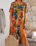 SPECIFICATIONS Style: Casual Material: Cotton Blends Dress Type: Shift dress Dress Length: Midi Neckline: Round Neck Pattern Type: Geometric Print, Print Sleeve Type: Regular sleeve Sleeve Length: Short Sleeve Fit Type: Loose Season: Spring, Summer, Fall Occasion: Daily Package Includes: 1 x Dress SIZE TABLE (cm) Size Bust Len...
