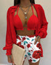 SPECIFICATIONS Style: Vacation, Sexy Material: Cotton Blends Occasion: Vacation Neckline: Lapel Pattern Type: Print Sleeve Type: Lantern Sleeve Sleeve Length: Long Sleeve Top Type: Bikini, Cover up Bra Type: Wireless Bra Bottom Type: Shorts Fit Type: Skinny Season: Summer Details: Shirred Package Includes: 1 x Bikini, 1 x Cover up SIZE TABL...