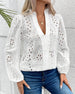 SPECIFICATIONS Top Type: Tops Style: Chic Material: Cotton Blends Occasion: Daily, Vacation Neckline: Stand Collar Pattern Type: Solid Color Sleeve Type: Regular sleeve Sleeve Length: Long Sleeve Fit Type: Regular Season: Spring, Summer, Fall Details: Hollow Out Package Includes: 1 x Top SIZE TABLE Size Bust Length CM INCH CM INCH S 9...