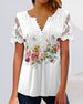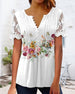 SPECIFICATIONS Top Type: T-shirt Style: Elegant Material: Cotton Blends, Lace Occasion: Daily Neckline: V neck_V Pattern Type: Floral, Print Sleeve Type: Regular sleeve Sleeve Length: Short Sleeve Fit Type: Regular Season: Spring, Summer, Fall Details: Patchwork, Buttons, Lace Package Includes: 1 x T-shirt SIZE TABLE (cm) Size ...
