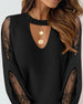 SPECIFICATIONS Top Type: Tops Style: Chic, Sexy Material: Cotton Blends, Lace Occasion: Daily Neckline: Round Neck Pattern Type: Solid Color Sleeve Type: Regular sleeve Sleeve Length: Long Sleeve Fit Type: Regular Season: Spring, Summer Details: Patchwork, Hollow Out, Lace Package Includes: 1 x Top SIZE TABLE Size Bust Length CM INCH ...