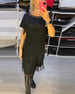 SPECIFICATIONS Style: Casual, Chic Material: Cotton Blends Dress Type: Shift dress Dress Length: Knee Length Neckline: Round Neck Pattern Type: Solid Color Sleeve Type: Regular sleeve Sleeve Length: Short Sleeve Details: Tassel Fit Type: Regular Season: Spring, Summer Occasion: Daily Package Includes: 1 x Dress SIZE TABLE Size Bust Leng...