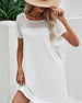 SPECIFICATIONS Style: Elegant Material: Cotton Blends Dress Type: A-Line Dress Length: Knee Length Neckline: Round Neck Pattern Type: Solid Color Sleeve Type: Regular sleeve Sleeve Length: Short Sleeve Details: Lace Fit Type: Regular Season: Spring, Summer Occasion: Daily, Vacation Package Includes: 1 x Dress SIZE TABLE Size Bust Leng...