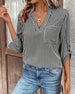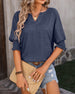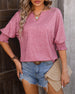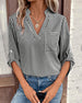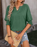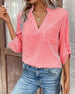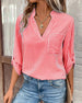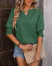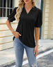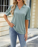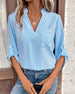 SPECIFICATIONS Top Type: Blouses Style: Casual Material: Cotton Blends Occasion: Daily, Vacation Neckline: V neck_V Pattern Type: Solid Color Sleeve Type: Regular sleeve Sleeve Length: Half Sleeve Fit Type: Regular Season: Spring, Summer, Fall Package Includes: 1 x Blouse SIZE TABLE Size Bust Length Sleeve CM INCH CM INCH CM INCH S ...