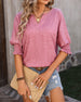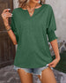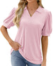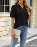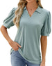 SPECIFICATIONS Top Type: Tops Style: Casual Material: Cotton Blends Occasion: Daily Neckline: Lapel Pattern Type: Solid Color Sleeve Type: Puff Sleeve Sleeve Length: Short Sleeve Fit Type: Regular Season: Spring, Summer, Fall Package Includes: 1 x Top SIZE TABLE Size Bust Length Sleeve Length CM INCH CM INCH CM INCH S 95...