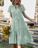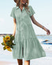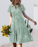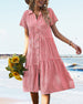 SPECIFICATIONS Style: Casual Material: Cotton Blends Dress Type: Shift dress Dress Length: Knee Length Neckline: Round Neck Pattern Type: Solid Color Sleeve Type: Regular sleeve Sleeve Length: Short Sleeve Details: Buttons Fit Type: Regular Season: Spring, Summer, Fall Occasion: Daily Package Includes: 1 x Dress SIZE TABLE Size Bust Len...