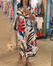 SPECIFICATIONS Style: Vacation Material: Cotton Blends Dress Type: A-Line Dress Length: Knee Length Neckline: V neck_V Pattern Type: Print Sleeve Type: Regular sleeve Sleeve Length: Half Sleeve Fit Type: Regular Season: Spring, Summer, Fall Occasion: Daily, Vacation Package Includes: 1 x Dress SIZE TABLE Size Bust Length CM INCH CM IN...