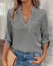 SPECIFICATIONS Top Type: Blouses Style: Casual, Business Material: Cotton Blends Occasion: Daily, Work Neckline: V neck_V Pattern Type: Striped Sleeve Type: Regular sleeve Sleeve Length: Long Sleeve Fit Type: Loose Season: Spring, Summer, Fall Details: Pocket Package Includes: 1 x Blouse SIZE TABLE Size Bust Length Sleeve Len...
