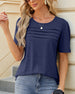 SPECIFICATIONS Top Type: T-shirt Style: Casual Material: Cotton Blends Occasion: Daily Neckline: U Neck_U Pattern Type: Solid Color Sleeve Type: Regular sleeve Sleeve Length: Short Sleeve Fit Type: Regular Season: Spring, Summer, Fall Details: Shirred Package Includes: 1 x T-shirt SIZE TABLE Size Bust Length Sleeve Shoulder CM INCH CM...