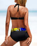 SPECIFICATIONS Style: Vacation, Sexy Material: Spandex, Polyester Occasion: Vacation Neckline: Halter Pattern Type: Color Block Sleeve Length: Sleeveless Top Type: Bikini Bra Type: Push Up Bottom Type: High Cut Fit Type: Regular Season: Summer Package Includes: 1 x Bikini SIZE TABLE Size Bust Waist Hip CM INCH CM INCH CM INCH S 72-8...