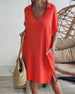 SPECIFICATIONS Style: Casual Material: Cotton Blends Dress Type: Shift dress Dress Length: Knee Length Neckline: Lapel Pattern Type: Solid Color Sleeve Type: Bat sleeve Sleeve Length: Short Sleeve Details: Pocket, Slit Fit Type: Regular Season: Spring, Summer, Fall Occasion: Daily Package Includes: 1 x Dress SIZE TABLE Size Bus...