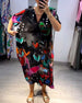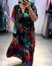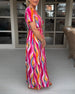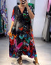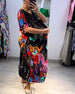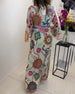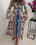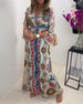 SPECIFICATIONS Style: Elegant Material: Cotton Blends Dress Type: A-Line Dress Length: Maxi Neckline: V neck_V Pattern Type: Print Sleeve Type: Flare Sleeve Sleeve Length: 3/4 Sleeve Details: Lace Up Fit Type: Regular Season: Spring, Summer, Fall Occasion: Daily Package Includes: 1 x Dress SIZE TABLE Size Bust Length CM...