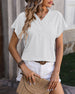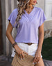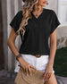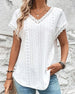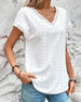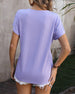 SPECIFICATIONS Top Type: T-shirt Style: Chic, Elegant Material: Cotton, Lace Occasion: Daily, Vacation Neckline: V neck_V Pattern Type: Solid Color Sleeve Type: Regular sleeve Sleeve Length: Short Sleeve Fit Type: Loose Season: Spring, Summer Details: Lace Package Includes: 1 x T-shirt SIZE TABLE Size Bust Length CM INCH CM INCH S 9...