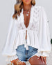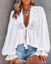 SPECIFICATIONS Style: Casual, Chic Material: 100% Cotton Neckline: V neck_V Pattern Type: Solid Color Sleeve Type: Lantern Sleeve Sleeve Length: Long Sleeve Details: Lace Up Fit Type: Regular Season: Spring, Summer Occasion: Daily SIZE TABLE Size Bust Length CM INCH CM INCH S 95 37.40 68 26.77 M 100 39.37 69.5 27.36 L 105 41.34 ...