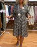 SPECIFICATIONS Style: Casual, Business Material: Cotton Blends Dress Type: A-Line Dress Length: Knee Length Neckline: V neck_V Pattern Type: Geometric Print Sleeve Type: Lantern Sleeve Sleeve Length: 3/4 Sleeve Details: Patchwork Fit Type: Regular Season: Spring, Summer, Fall Occasion: Daily, Work Package Includes: 1 x Dress SIZE TABLE ...
