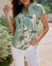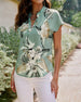 SPECIFICATIONS Top Type: Shirt Style: Casual Material: Cotton Blends Occasion: Daily, Vacation Neckline: V neck_V Pattern Type: Leaves Sleeve Type: Regular sleeve Sleeve Length: Short Sleeve Fit Type: Regular Season: Spring, Summer Details: Buttons Package Includes: 1 x Shirt SIZE TABLE Size Bust Length CM INCH CM INCH S 95 37.4...