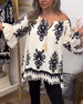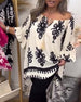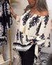 SPECIFICATIONS Top Type: Blouses Style: Casual, Vacation, Chic Material: Cotton Blends Occasion: Daily, Vacation Neckline: Off Shoulder Pattern Type: Print Sleeve Type: Ruffle Sleeve Sleeve Length: 3/4 Sleeve Fit Type: Loose Season: Spring, Summer Package Includes: 1 x Blouse SIZE TABLE Size Bust Length CM INCH CM INCH S...