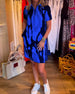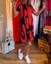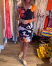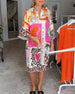 Colorful short-sleeved mid-length dress