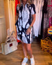 Printed lapel short sleeve dress