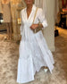 SPECIFICATIONS Style: Casual, Elegant Material: Cotton Blends Dress Type: A-Line Dress Length: Maxi Neckline: V neck_V Pattern Type: Print Sleeve Type: Regular sleeve Sleeve Length: 3/4 Sleeve Details: Shirred Fit Type: Regular Season: Spring, Summer Occasion: Daily, Vacation Package Includes: 1 x Dress SIZE TABLE Size Bust Leng...
