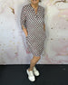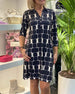 Button printed lapel dress