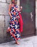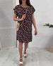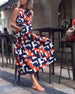 Lapel line printed short-sleeved midi dress