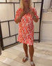3/4 sleeves deep V-neck printed dress